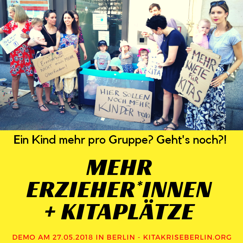 Langsam wissen wir, wie es geht! Nachdem der Senat am Donnerstag entschieden hat, dass der Betreuungsschlüssel (also wie viele Kinder ein*e Erzieher*in zu betreuen hat) aufgelöst wird und nun jede Kita ein (??) Kind mehr aufnehmen soll, haben wir uns entschlossen: da gehen wir doch mal vorbei uns zeigen: WIR SIND DAGEGEN!